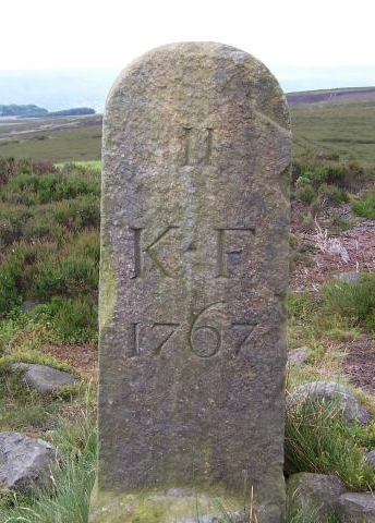 The first task of the Commission, however, had been to establish the forest boundaries. Accordingly a perambulation was announced, starting at Ribston (on the Nidd, three miles south-east of Knaresborough) on September 3rd 1767, with the assistance of local people. The boundary was then marked by a series of round-topped stones carved with a number, the letters K-F, and the date (normally 1767).
